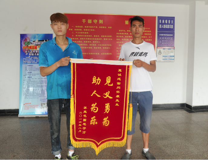 闫怀康救助老人后并没有声张,直到今天,老人的儿子毛红飞特意到箭鹿集团找到了他,向其再三表示感谢,并送来锦旗。大家才得知了闫怀康的高尚行为。