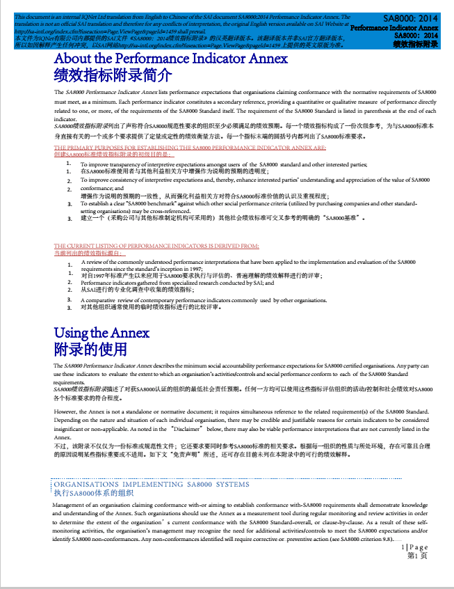 我公司于2016年完成了SA8000-2014的换版工作,并且制定程序文件及手册进行持续控制和改进,控制程序目录: